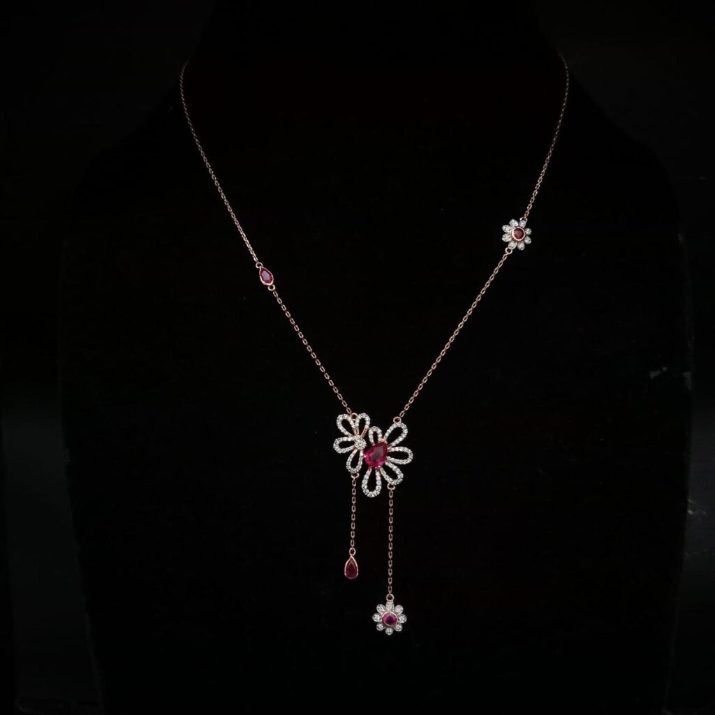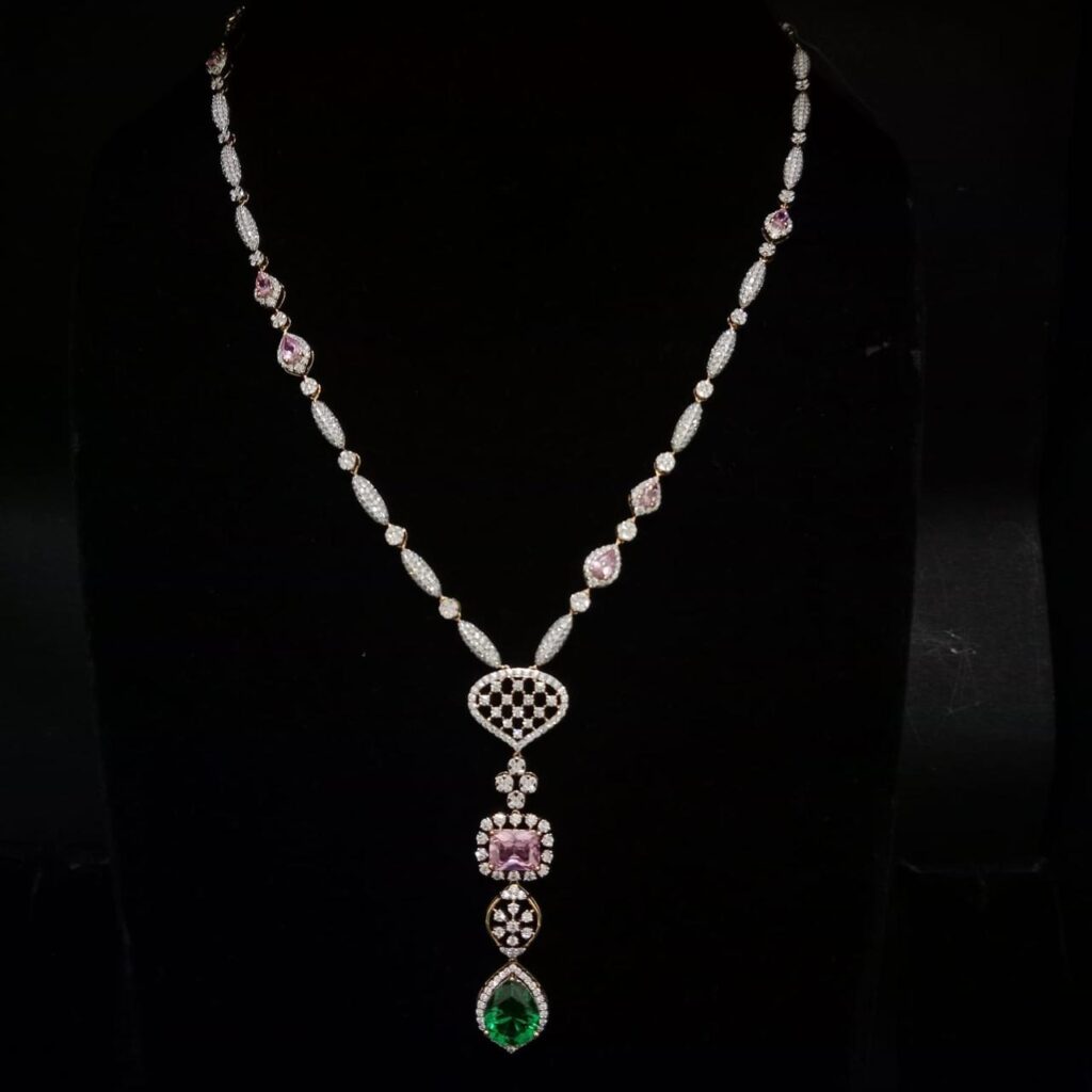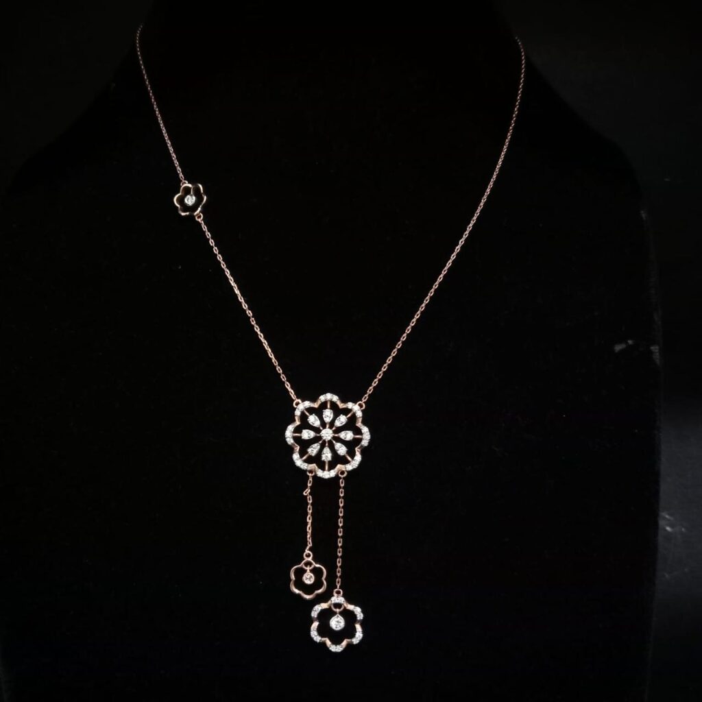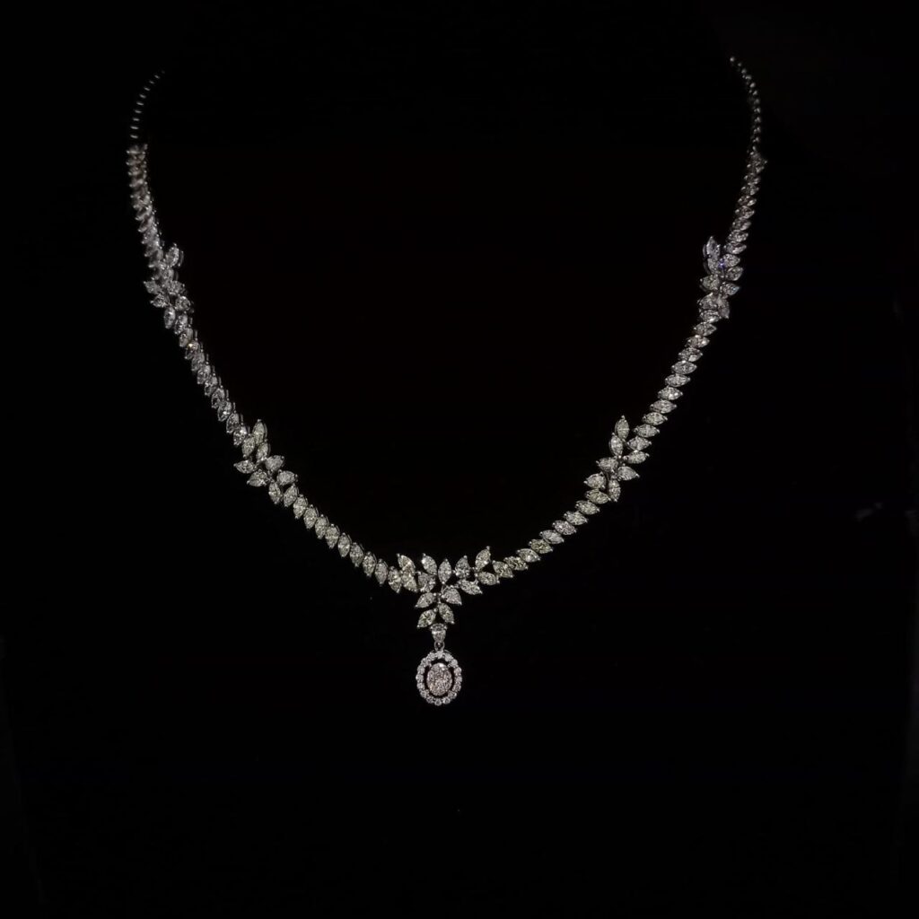 Furthermore, these lightweight diamond necklaces suit daily elegance, evening gatherings, and refined parties. They add a subtle glow that complements both traditional attire and modern fashion.